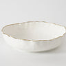 Make a statement with this extra large shallow bowl from our Portofino Collection—an elegant and versatile piece perfect for serving crowd-pleasing favorites like paella, chicken piccata, or fettuccine alfredo. Its wide, open design also makes it an ideal countertop display for fresh fruits or seasonal vegetables. Crafted from brilliant white porcelain and accented with a delicate gold trim, it brings understated luxury to any table or kitchen. Food safe, tarnish-free, dishwasher safe, and oven safe up to 500°F, this bowl combines timeless style with everyday functionality.