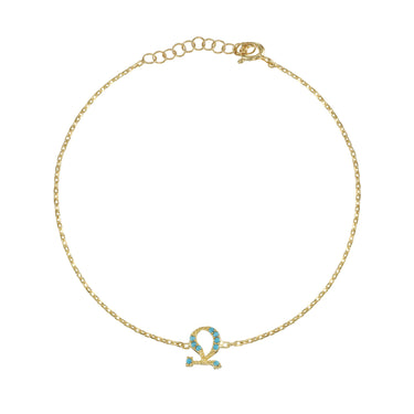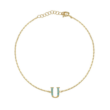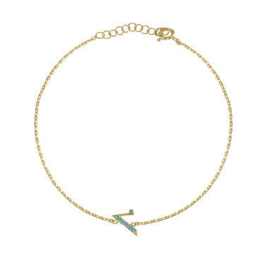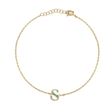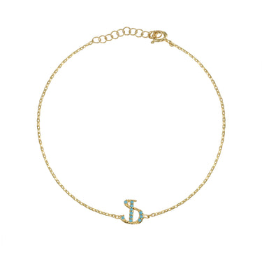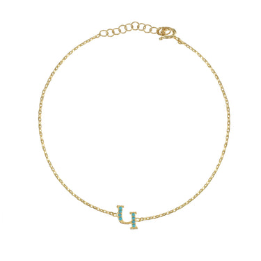 Armenian Initial Bracelet Gold w/ Turquoise Stones