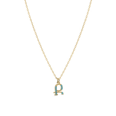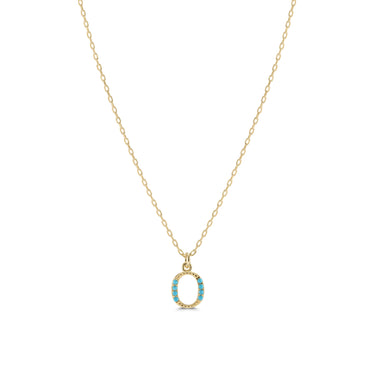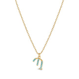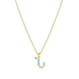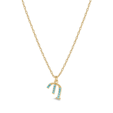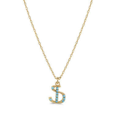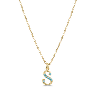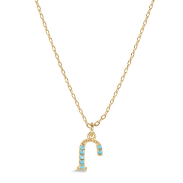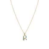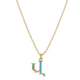 Armenian Initial Necklace Gold w/ Turquoise Stones