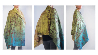 The Geghard monastery was founded in the 4th century, by Gregory the illuminator. In this shawl, details from the doors of the monastic complex have been incorporated.