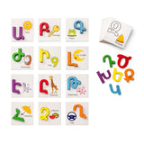 A fun and exploratory way to teach children the alphabet. A toy that is designed to encourage fine motor and visual perception sills. This set of Armenian letters comes with 38 wooden letters, 38 double sided cards, and a durable box for storage. One side of the card has a letter and an image in order to use as a reference in finding the corresponding block letter. While the other side just has the letter.