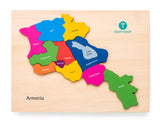 With this toy, children will enjoy exploration of Armenia. They will be introduced to the different regions in the country with this visually attractive chunky wooden puzzle of the Armenia map. Each region can be removed individually. Once removed, you can see that regions name written in Armenian on the base. The regions names are also written in English on top of each region.