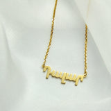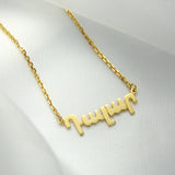 Our Armenian Name Necklace can be customized in any font and language. The pendant and dainty box chain are made with sterling silver. They can be plated in yellow gold or white gold.
