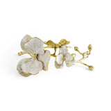 Indulge in a beautiful work of art with this Orchid Object from Michael Aram. A perfect tabletop home décor piece, this small orchid sculpture is crafted in natural brass and white enamel and measures 12" x 7" x 5.5" - symbolizing grace, peace, and sensuality. Add sophistication to any room with this exquisite piece.