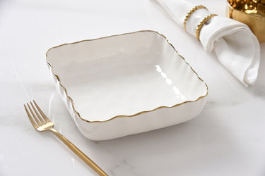 Add a touch of elegance to your entertaining with this beautifully crafted cocktail napkin holder from our Portofino Collection. Designed to hold standard cocktail napkins in style, it also doubles as a chic serving dish for small pastries, sliced fruits, or bite-sized appetizers. Made from luminous white porcelain with a delicate gold trim, it’s a sophisticated accent for any gathering—from casual brunches to upscale soirées. Food safe, tarnish- and stain-free, dishwasher safe, and oven safe up to 500°F, it offers timeless beauty with effortless care.
