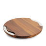 Making a contemporary statement when it goes around the table or graces a buffet, this circular cheese block of warm Acacia wood features lustrous 18/10 stainless-steel inset accents that offer an artistic contrast with additional functionality as the knife and spreader.