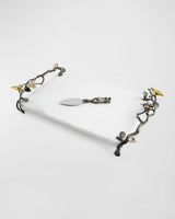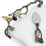 The Lovebirds Collection celebrates love and the deeply engrained nature in us all to bond with one another. The branch that the birds perch upon symbolizes growth and evokes tree of life imagery. The white, four-petaled flowers represent wholeness, unity, and innocence.